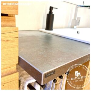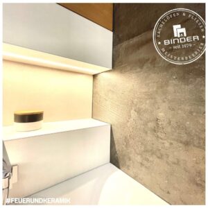 Besonders edle XXL Keramik mit über 210x110cm (!) kamen hier z.B. im Bereich der Dusche zum Einsatz.